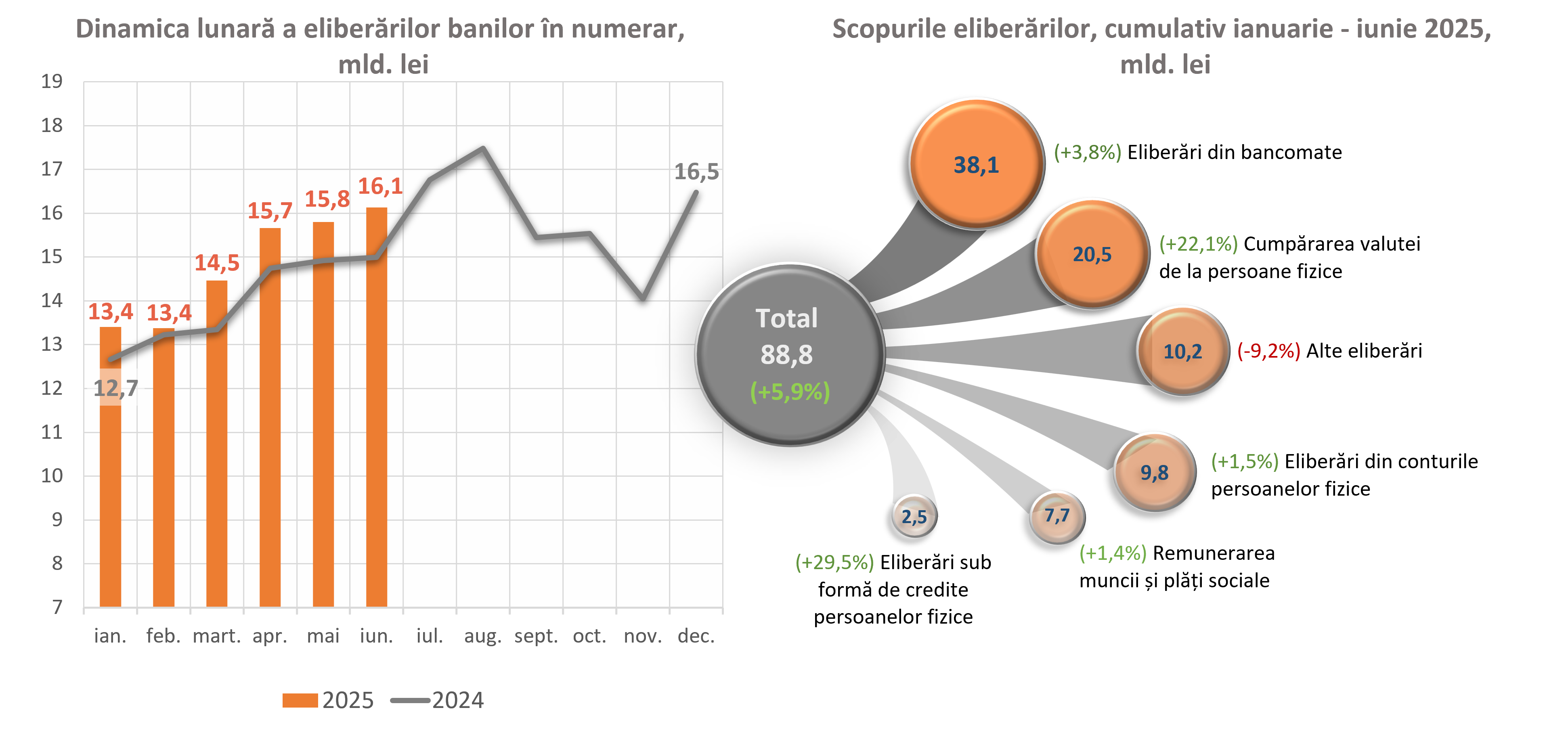 Eliberări din conturile persoanelor fizice = „Eliberări de numerar din conturile curente și din conturile de depozit” + „Eliberări de numerar din conturile de card”;