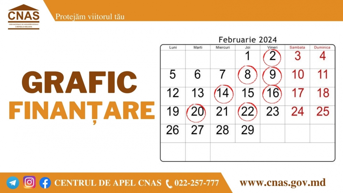 Anunțăm graficul finanțării prestațiilor sociale pentru luna februarie