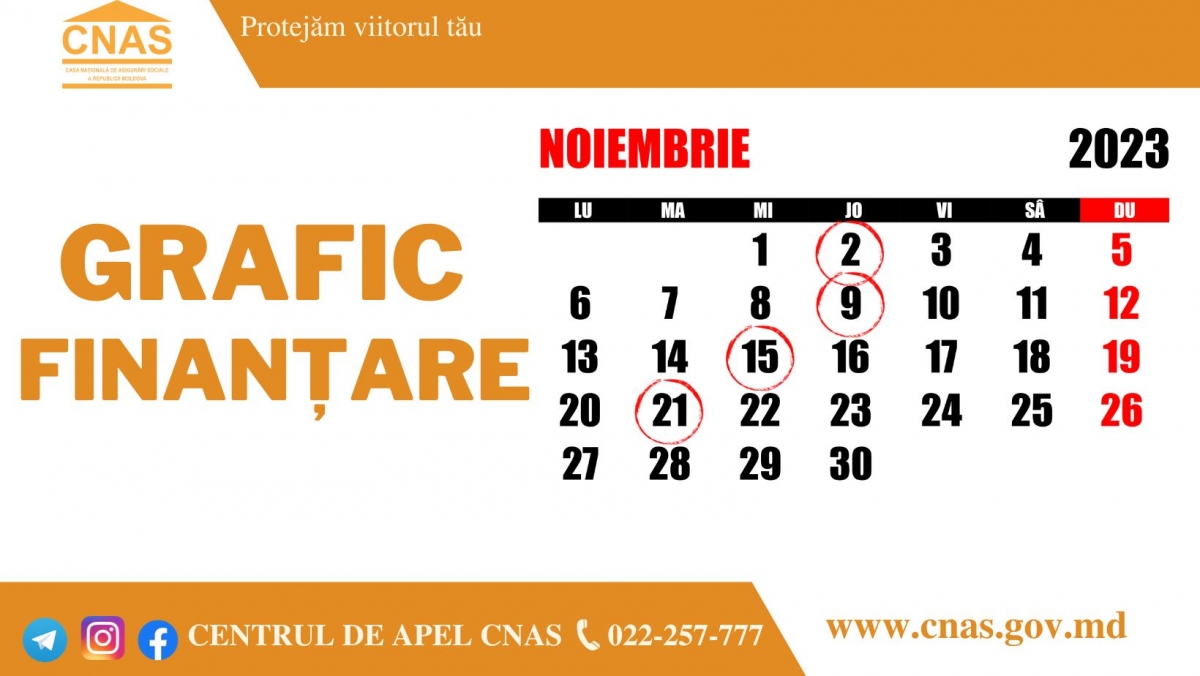 Anunțăm graficul finanțării prestațiilor sociale pentru luna noiembrie