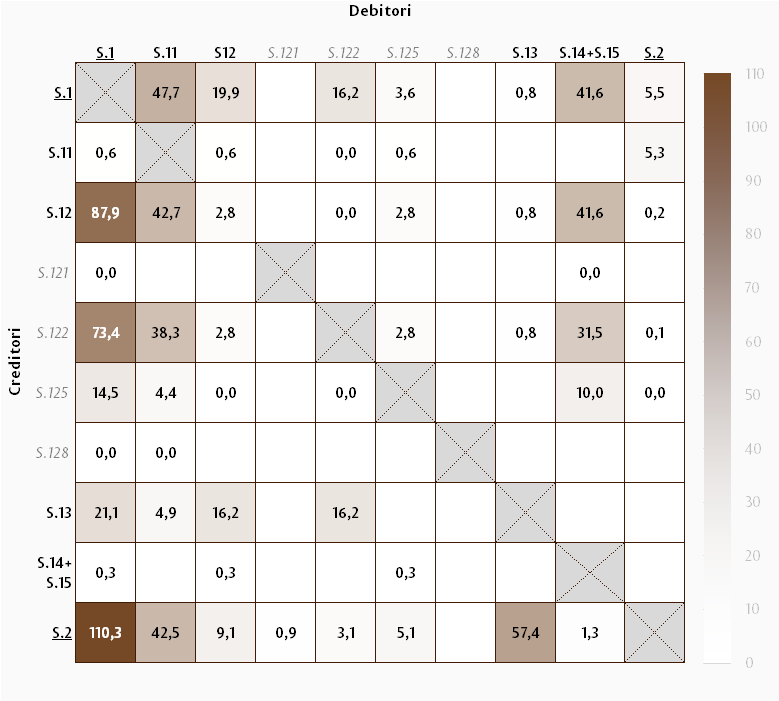 Notă: S.1 - Economia națională, S.11 - Societăți comerciale nefinanciare; S.121 - Banca centrală; S.122 - Alte instituții financiare monetare; S.125 - Alți intermediari financiari; S.128 - Societăți de asigurare; S.13 - Administrația publică; S.14+S15 - Gospodăriile populației și instituțiile fără scop lucrativ în serviciul gospodăriilor populației; S.2 - Restul lumii