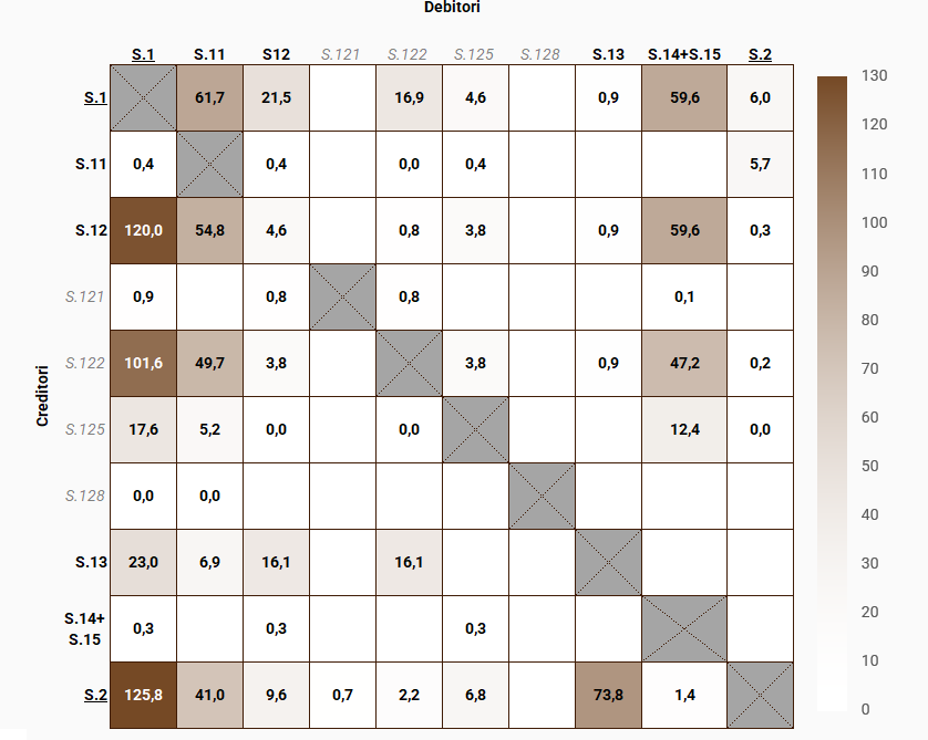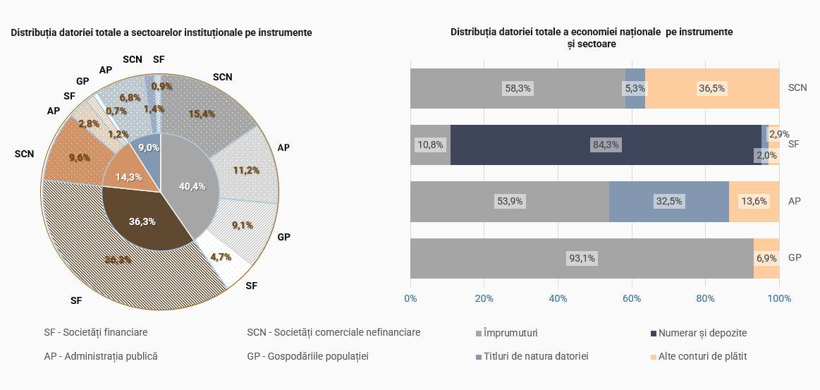Notă: S.1 - Economia națională, S.11 - Societăți comerciale nefinanciare; S.121 - Banca centrală; S.122 - Alte instituții financiare monetare; S.125 - Alți intermediari financiari; S.128 - Societăți de asigurare; S.13 - Administrația publică; S.14+S15 - Gospodăriile populației și instituțiile fără scop lucrativ în serviciul gospodăriilor populației; S.2 - Restul lumii.