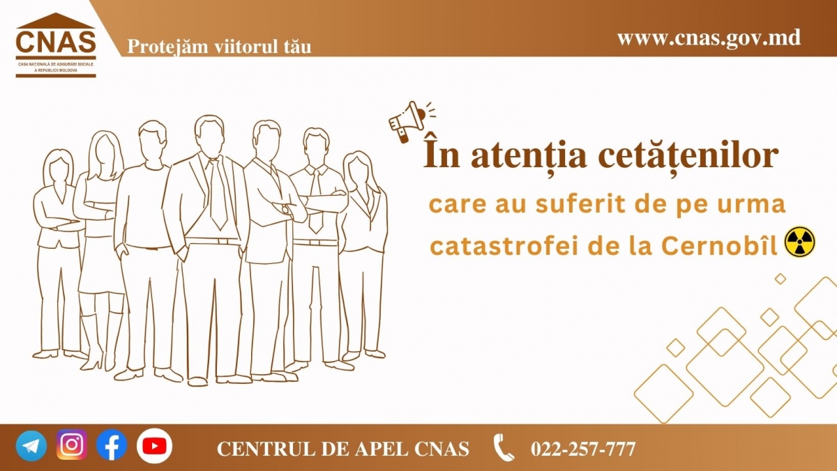 CNAS anunţă despre modificarea modului de acordare a plăţii pentru Concediul suplimentar de 14 zile calendaristice cetățenilor care au suferit de pe urma catastrofei de la Cernobîl
