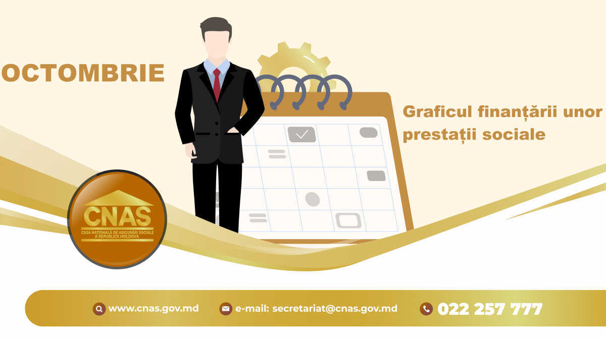 Pentru comoditatea beneficiarilor unor prestații sociale, Casa Naţională de Asigurări Sociale anunță regimul finanțării pentru luna octombrie. Conform prevederilor cadrului normativ indemnizaţiile l