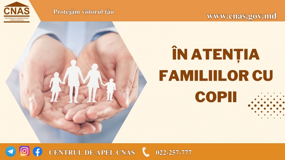 Casa Naţională de Asigurări Sociale informează că, au fost operate modificări în legislație privind plata indemnizațiilor pentru familiile cu copii. Astfel, începând cu luna aprilie, achitarea inde