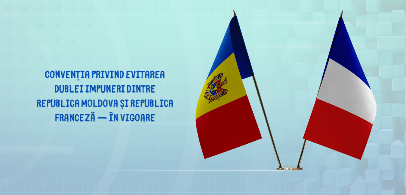 Serviciul Fiscal de Stat informează despre intrarea în vigoare a Convenției dintre Guvernul Republicii Moldova și Guvernul Republicii Franceze pentru evitarea dublei impuneri și prevenirea evaziunii și fraudei fiscale cu privire la impozitele pe venit, ale cărei prevederi se vor pune în aplicare începând cu data de 01 ianuarie 2025.