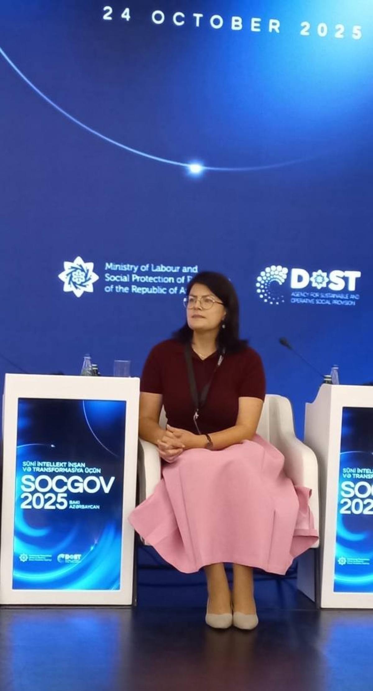 Astăzi, 24 octombrie, directoarea generală a Casei Naționale de Asigurări Sociale, Elena Țîbîrnă, a participat în calitate de speaker la conferința internațională „SocGov 2025: AI for Humanity and Transformation” (Inteligența Artificială pentru Umanitate și Transformare), organizată sub egida Ministerului Muncii și Protecției Populației al Republicii Azerbaidjan.