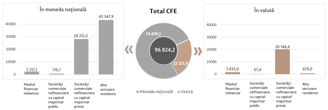 De menționat că soldul cererilor față de economie în valută, exprimate în EUR9, a constituit în luna iulie 1 131,0 milioane EUR, majorându-se cu 15,8 milioane EUR (+1,4 la sută) comparativ cu luna iunie 2025.