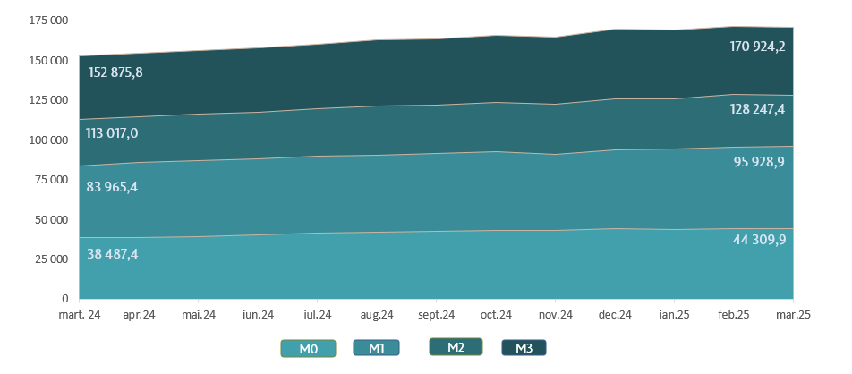 Evoluția indicatorilor monetari în luna martie 2025
