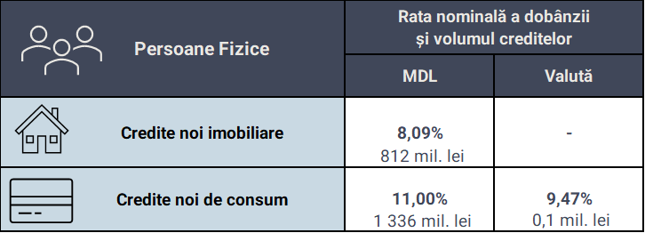 Volumul creditelor noi acordate persoanelor fizice și ratele nominale ale dobânzilor aferente sunt reflectate în tabelul de mai jos.