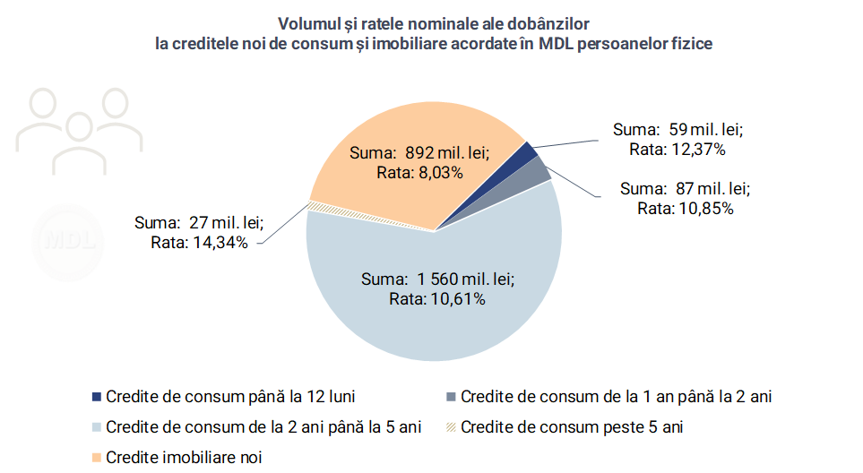 Volumul creditelor noi acordate persoanelor fizice și ratele nominale ale dobânzilor aferente sunt reflectate în tabelul de mai jos.
