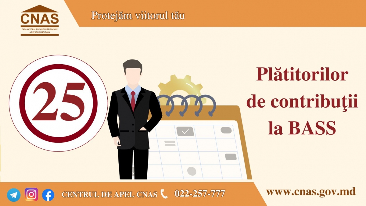 Casa Naţională de Asigurări Sociale reaminteşte, că data de 25 martie 2024 reprezintă termenul limită de declarare şi de plată a contribuţiilor de asigurări sociale de stat obligatorii la bugetul asigurărilor sociale de stat.