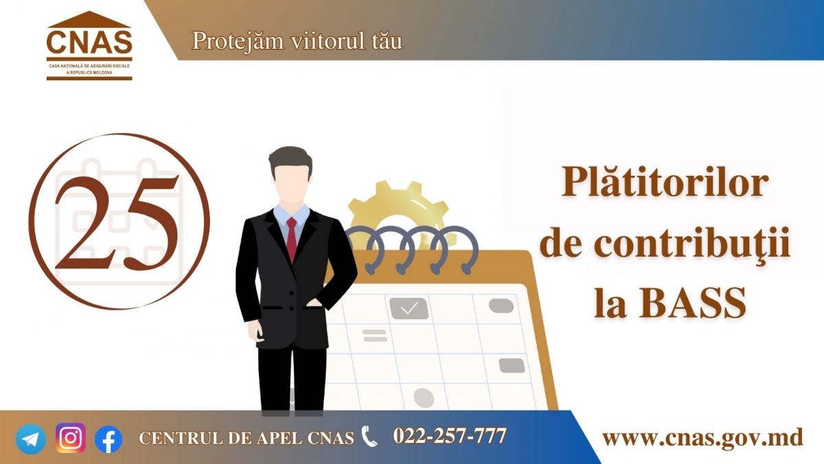 Casa Națională de Asigurări Sociale reamintește, că data de 25 noiembrie 2025 reprezintă termenul limită de declarare şi de plată a contribuțiilor de asigurări sociale de stat obligatorii la bugetul asig
