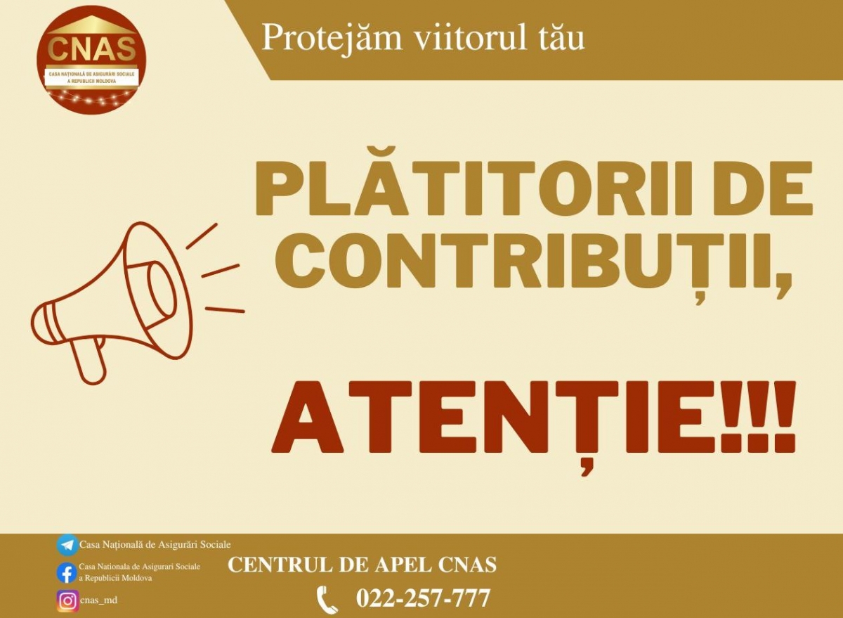 Casa Naţională de Asigurări Sociale informează plătitorii de contribuţii la bugetul asigurărilor sociale de stat, că plăţile ce constituie încasări ale bugetului asigurărilor sociale de stat, începând cu