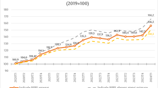 Indicele RPPI aferent prețului de ofertă pentru bunurile imobile prezentate pe piața primară a înregistrat valoarea de 166,2 la sută, fiind în creștere cu 8,5 la sută față de trimestrul IV 2023, sau cu 10,7 la sută față de trimestrul I 2023.