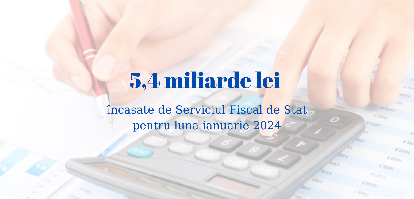 Încasările la Bugetul Public Național (BPN) administrate de Serviciul Fiscal de Stat, conform informațiilor operative, au constituit 5,4 miliarde lei în perioada ianuarie 2024, ceea ce denotă o creștere de 687,4 milioane lei sau cu circa 14,7 % în raport cu perioada similară a anulu