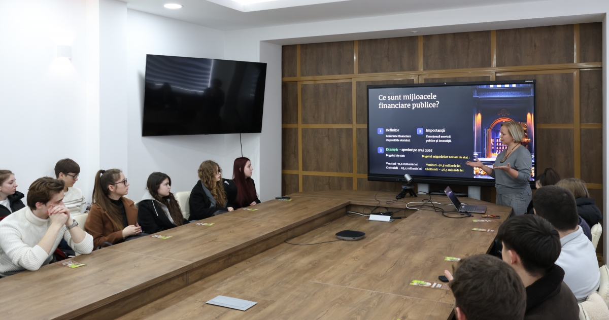 Doamna Ludmila Budeștean, șefa adjunctă a Direcției generale planificare bugetară, le-a oferit studenților o perspectivă practică asupra gestionării bugetului asigurărilor sociale de stat, împărtășind tehnici și metode eficiente de planificare bugetară. De asemenea, aceștia au aflat despre importanța achitării contribuțiilor de asigurări sociale și beneficiile pe care le oferă sistemul de asigurări sociale.