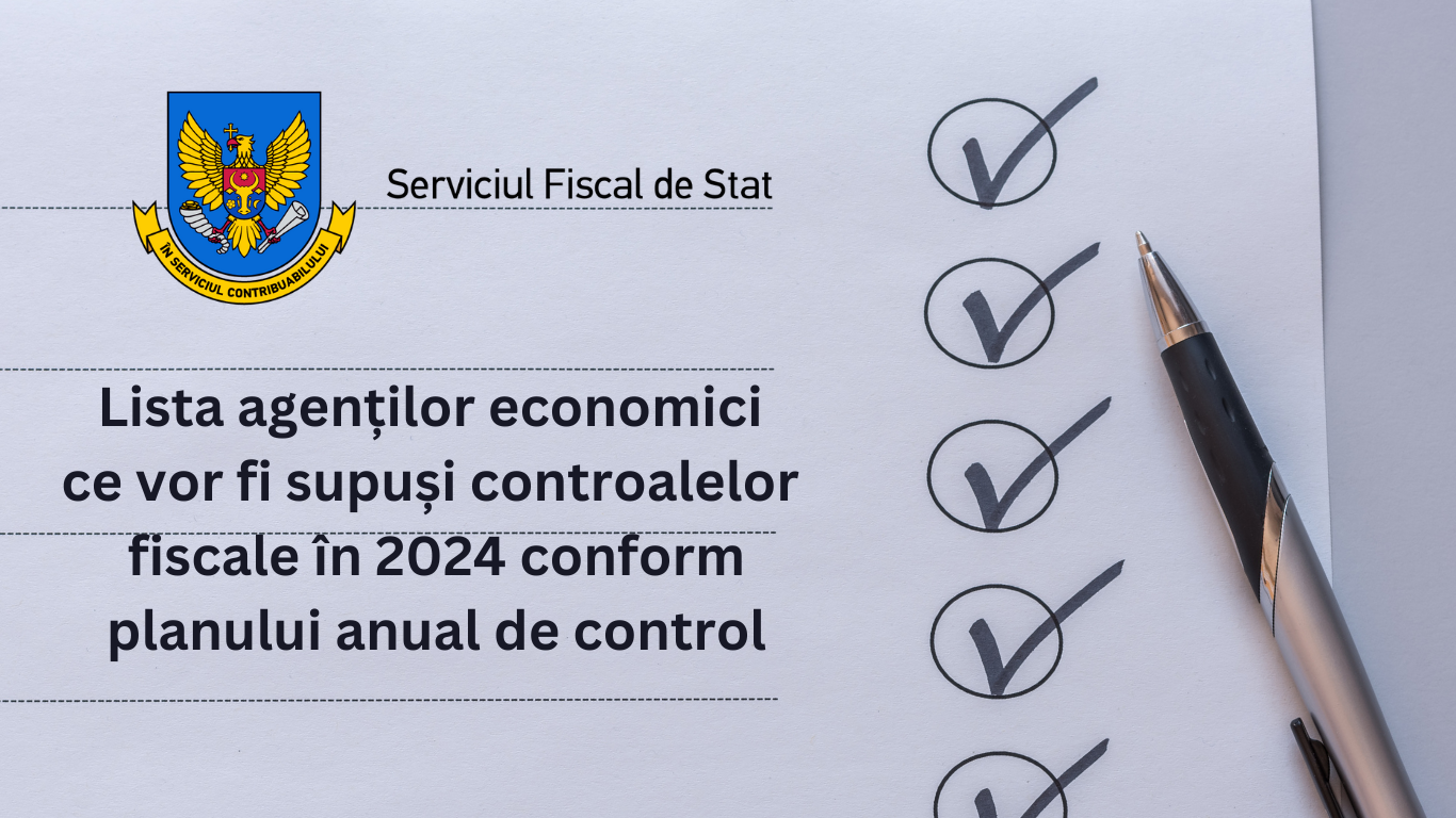 Lista agenților economici ce vor fi supuși controalelor fiscale în 2024 conform planului anual de control