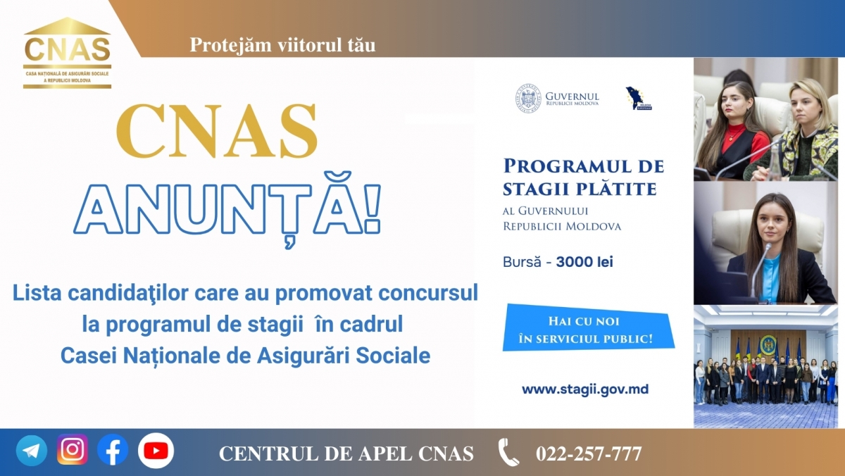 Casa Națională de Asigurări Sociale anunță lista candidaților care au promovat concursul la programul de stagii.