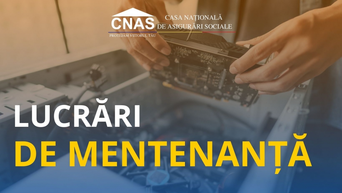 Stimați beneficiari ai serviciilor prestate de Casa Națională de Asigurări Sociale, Vă informăm că, începând cu ora 09:00, data de 22 noiembrie 2025, vor fi efectuate lucrări de mentenanță a Sistemului i