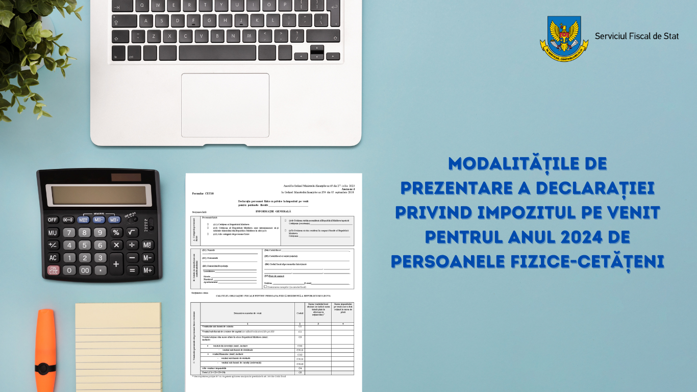 Serviciul Fiscal de Stat reamintește că, la data de 30 aprilie 2025 expiră termenul de prezentare a Declarației cu privire la impozitul pe venit (Forma CET18) de către persoane fizice care nu desfășoară activitate de întreprinzător pentru anul 2024. Declarația cu privire la imp