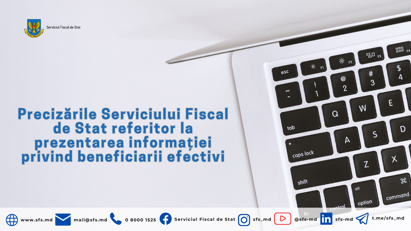 Stimați contribuabili,Vă informăm că persoanele juridice, întreprinzătorii individuali și organizațiile necomerciale înregistrate în Republica Moldova au obligația de a prezenta și/sau actualiza informația cu privire la beneficiarul efectiv/beneficiarii efectivi la Agenția Servicii