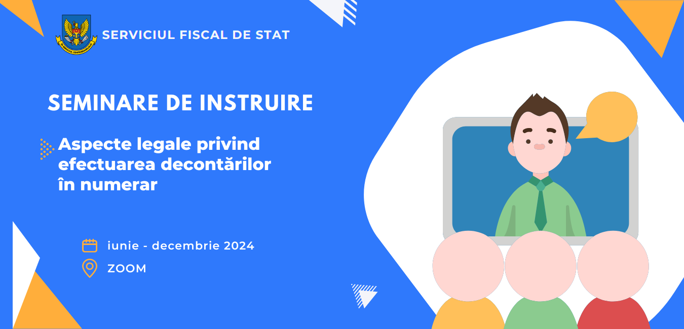 Serviciul Fiscal de Stat va organiza, în perioada iunie-decembrie 2024, o serie de seminare de instruire pentru contribuabili referitor la aspectele legale privind efectuarea decontărilor în numerar, urmare a adoptării Legii nr. 34/2024 – în vigoare de la 01 ianuarie 2025. Toat