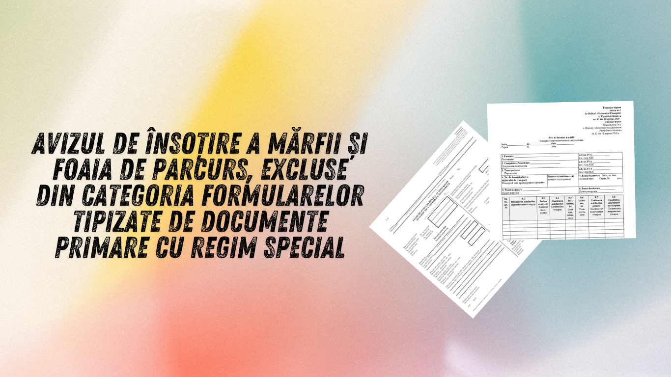 Serviciul Fiscal de Stat informează că, începând cu data de 27 mai 2024, avizul de însoțire a mărfii și foaia de parcurs vor fi excluse din categoria formularelor tipizate de documente primare cu regim special, urmare a aprobării Hotărârii Guvernului nr. 229/2024, publicată în Monit