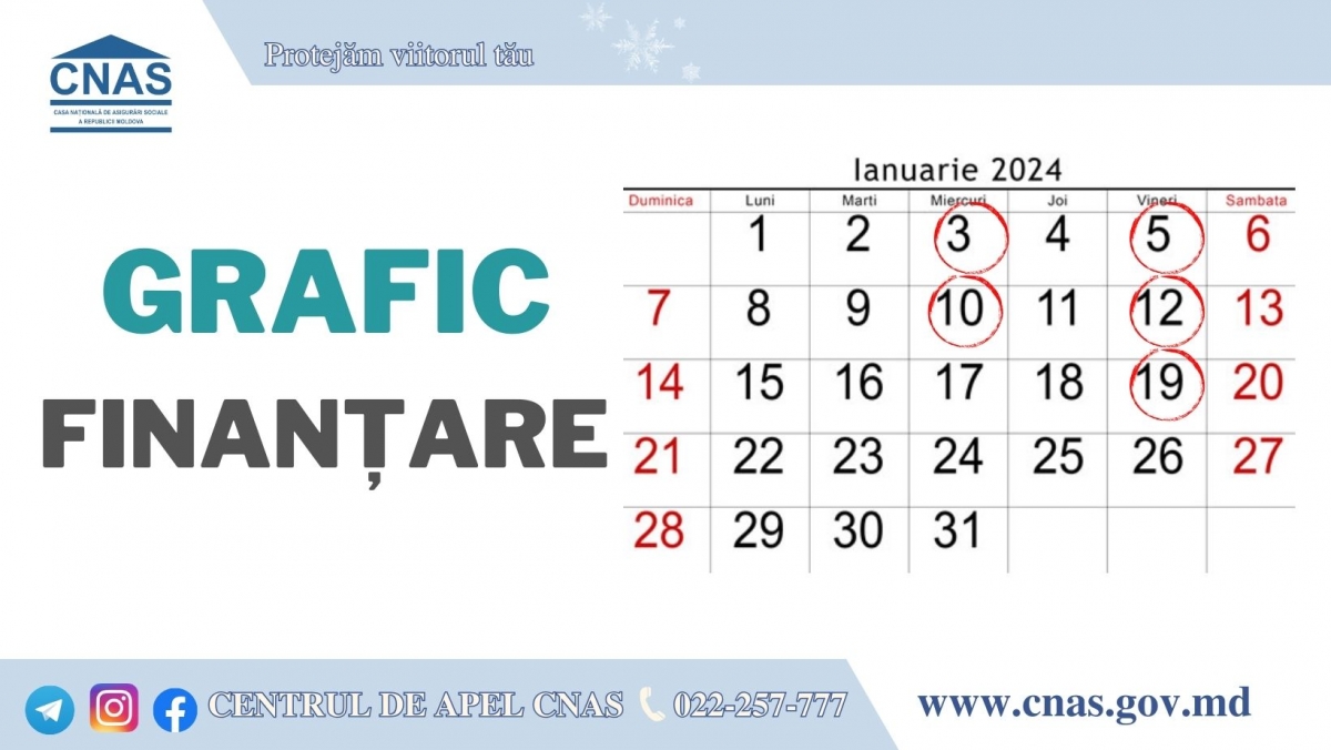 Casa Naţională de Asigurări Sociale anunță graficul finanțării unor prestații sociale pe parcursul lunii ianuarie. Astfel, finanțarea indemnizațiilor pentru familiile cu copii, indemnizațiilor de ma