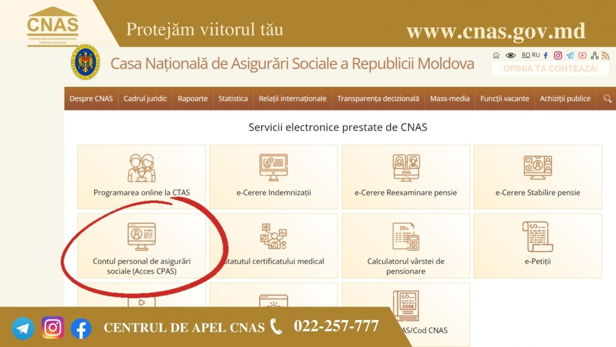 Casa Națională de Asigurări Sociale reamintește tuturor internauților că pagina web-oficială a autorității www.cnas.gov.md, precum și conturile pe rețelele de socializare (Facebook, Instagram, Telegram)