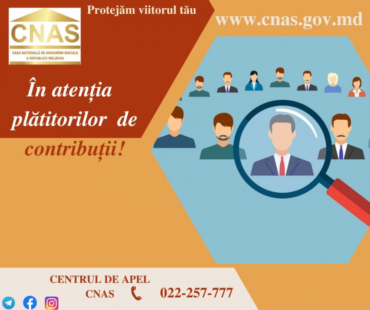 Casa Naţională de Asigurări Sociale aduce la cunoștința plătitorilor de contribuții la bugetul de asigurări sociale de stat, că pe pagina web-oficială www.cnas.gov.md a fost plasată versiunea electronică