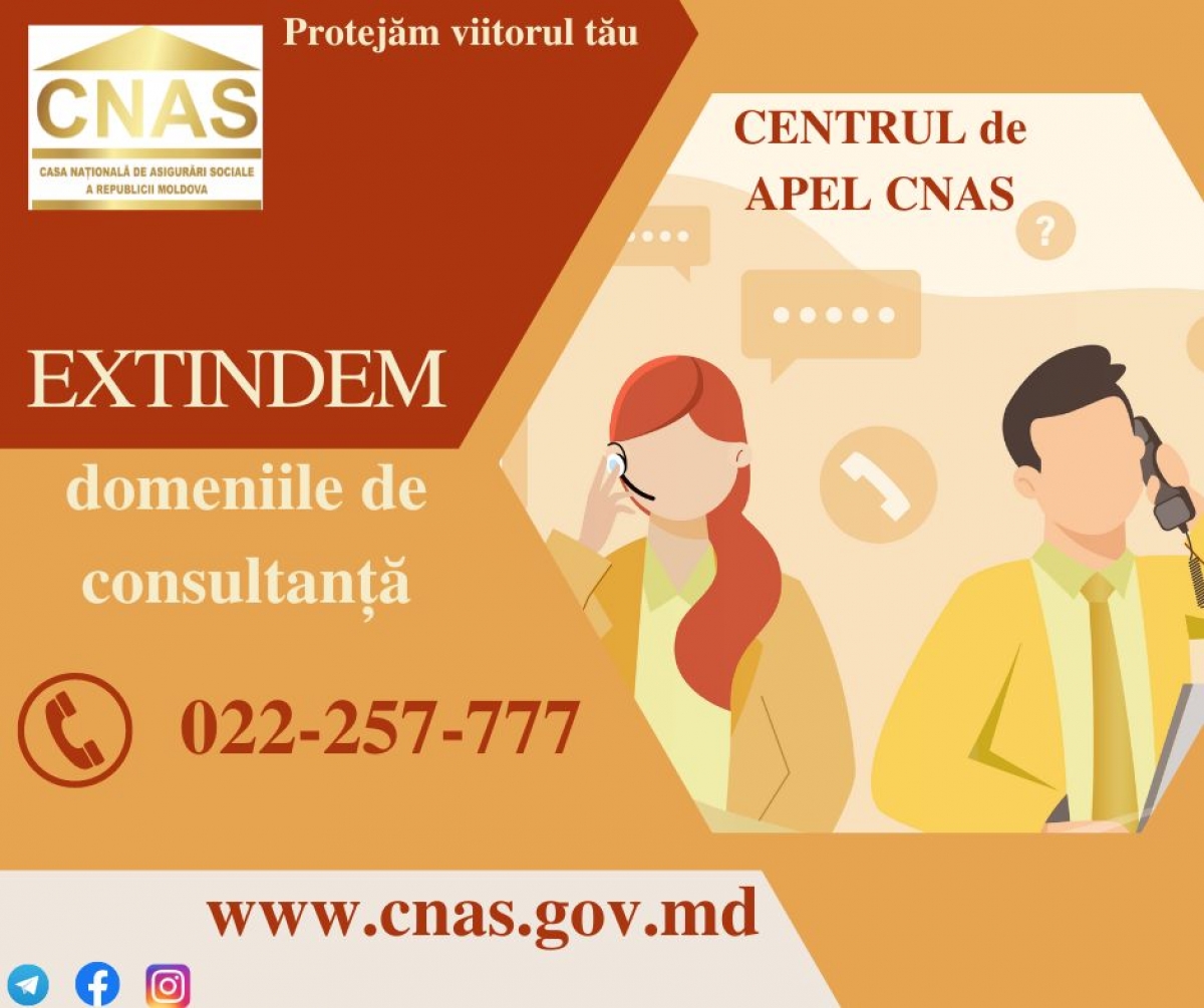 Casa Naţională de Asigurări Sociale a extins domeniile de consultanţă a persoanelor fizice şi juridice prin intermediul Centrului de Apel. Astfel, apelând la numărul de telefon unic (022) 257-777,