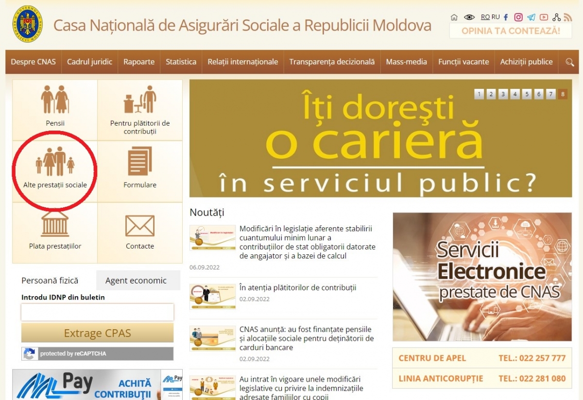 Pagina oficială a Casei Naționale de Asigurări Sociale www.cnas.gov.md reprezintă o sursă sigură și comodă de informații din domeniul prestațiilor sociale. Continuăm să aducem urmăritorii paginii of