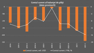 Balanța de plăți în trimestrul II 2021 (date provizorii) Conform datelor preliminare, în trimestrul II 2021, soldul contului curent al balanţei de plăţi a Republicii Moldova a înregistrat un deficit de 506,52 mil. USD. Raportat la PIB, contul curent a constituit -15,7 la sută (față de -0,8 la sut