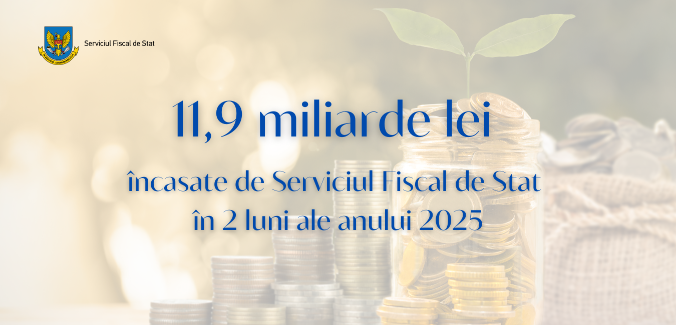 Încasările la Bugetul public național (BPN) administrate de Serviciul Fiscal de Stat, conform informațiilor operative, au constituit 11,9 miliarde lei pentru 2 luni ale anului 2025, ceea ce denotă o creștere de 1,7 miliarde lei sau cu 16,3% în raport cu perioada similară a anului pr