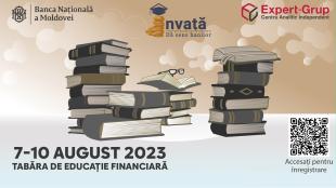 „Tabăra de educație financiară”, preconizată anul acesta pentru perioada 7-10 august a ajuns la a IV-a ediție. Este un eveniment pe care Banca Națională a Moldovei îl desfășoară în perioada estivală, în parteneriat cu Centrul Analitic Independent „Expert-Grup” în cadrul proiectului de educați