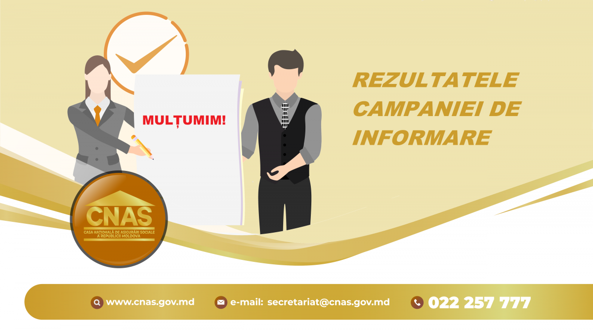 Concomitent, ținem să aducem mulțumiri reprezentanților mass-media, utilizatorilor paginii web oficiale www.cnas.gov.md și urmăritorilor paginii CNAS pe Facebook pentru contribuția la realizarea scopului campaniei de informare - Sporirea nivelului de transparență a mecanismelor stabilirii, calculării, indexării și majorării pensiilor prin informarea activă a populației. Materialele despre lansarea și mersul campaniei au acumulat peste 29 mii de vizualizări pe www.cnas.gov.md, iar pe pagina de Facebook au fost vizualizate de circa 131 mii ori.