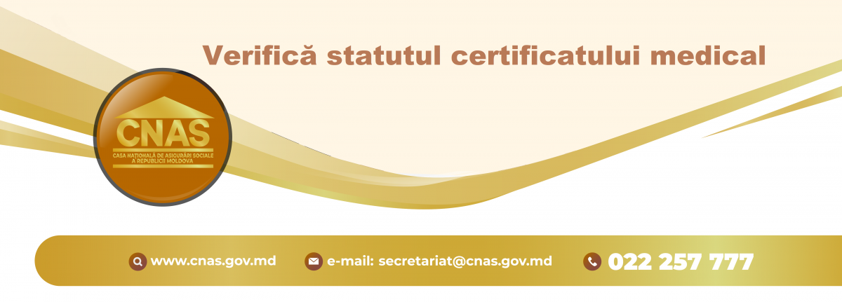 Casa Națională de Asigurări Sociale amintește tuturor beneficiarilor de indemnizaţii pentru incapacitate temporară de muncă, că statutul certificatului medical poate fi verificat online, accesând rubrica "Statutul certificatului medical".