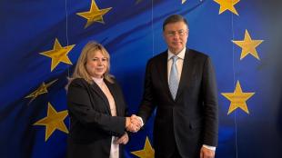 În cadrul vizitei de lucru la Bruxelles, guvernatoarea Băncii Naționale a Moldovei, doamna Anca Dragu, a avut astăzi, 1 octombrie 2025, o întrevedere bilaterală cu domnul Valdis Dombrovskis, Comisar european pentru Economie, Productivitate, Implementare și Simplificare. Discuțiile au vizat consol