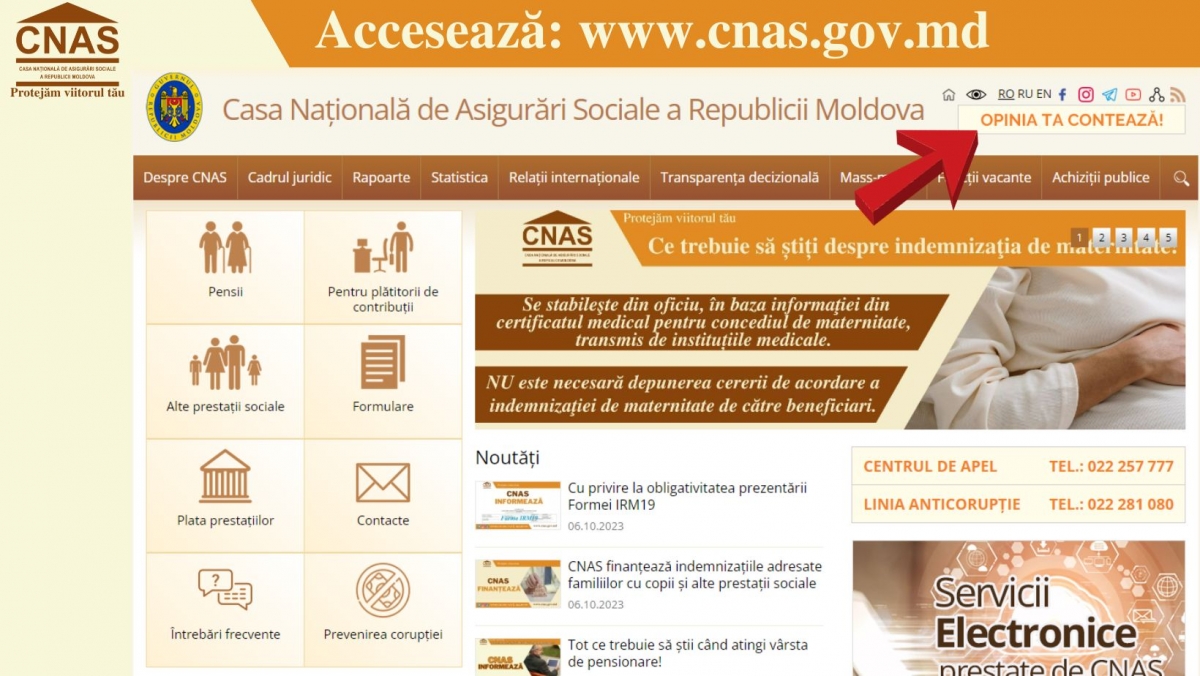 În scopul evaluării şi îmbunătăţirii calităţii serviciilor publice prestate beneficiarilor, Casa Naţională de Asigurări Sociale prin intermediul chestionarului de pe pagina oficială a autorității - www.c