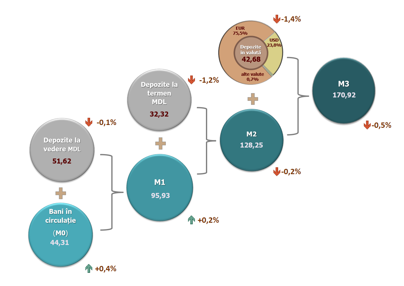 4. Masa monetară M1 include banii în circulație (M0) și depozitele la vedere în lei moldovenești ale rezidenților.