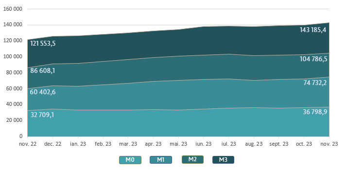 Evoluția indicatorilor monetari în luna noiembrie 2023