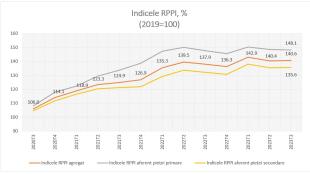 Indicele RPPI aferent prețului de ofertă pentru bunurile imobile din cadrul pieței secundare a înregistrat valoarea de 135,6 la sută, fiind în creștere cu 0,2 la sută față de trimestrul II 2023 și cu 2,6 la sută față de trimestrul III 2022.