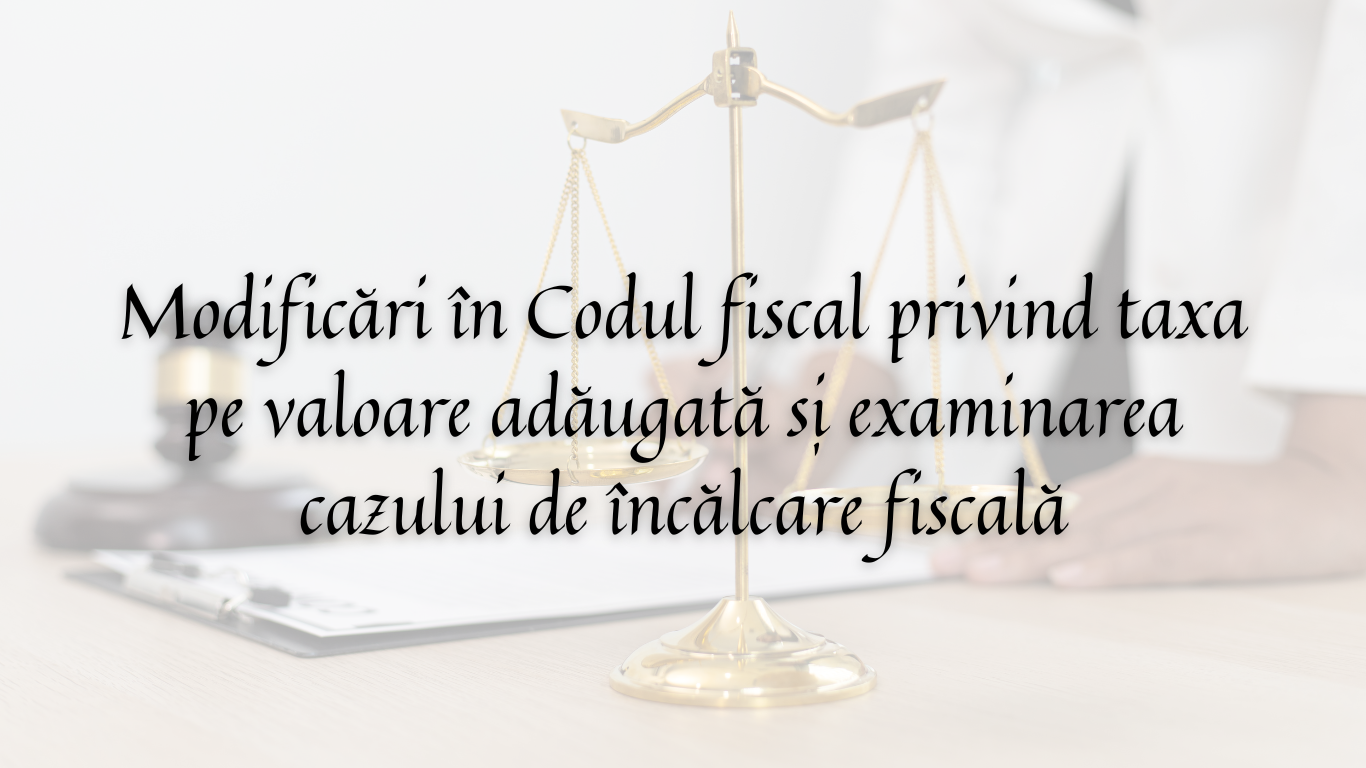Modificări în Codul fiscal privind taxa pe valoare adăugată și examinarea cazului de încălcare fiscală