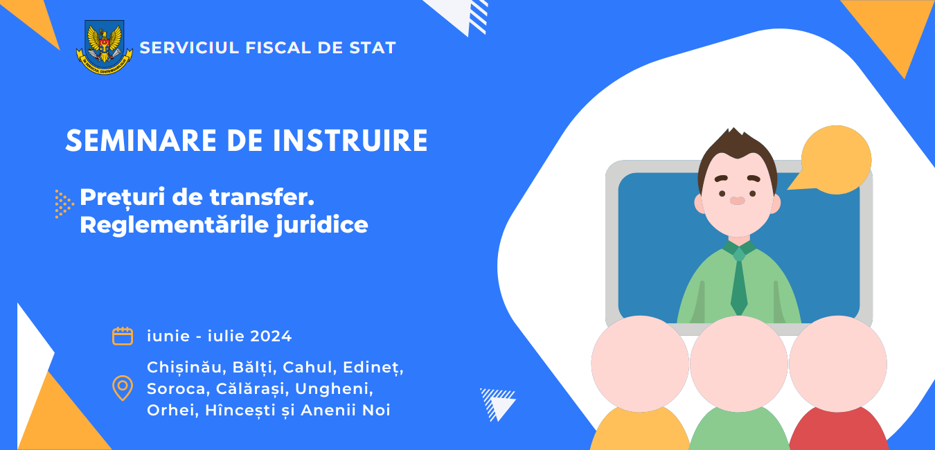 Serviciul Fiscal de Stat va desfășura o serie de seminare de instruire pentru contribuabili referitor la prețurile de transfer și criteriile legale aferente tranzacțiilor ce vor cădea sub incidența legislației prețurilor de transfer. Toate seminarele sunt gratuite și vor avea l