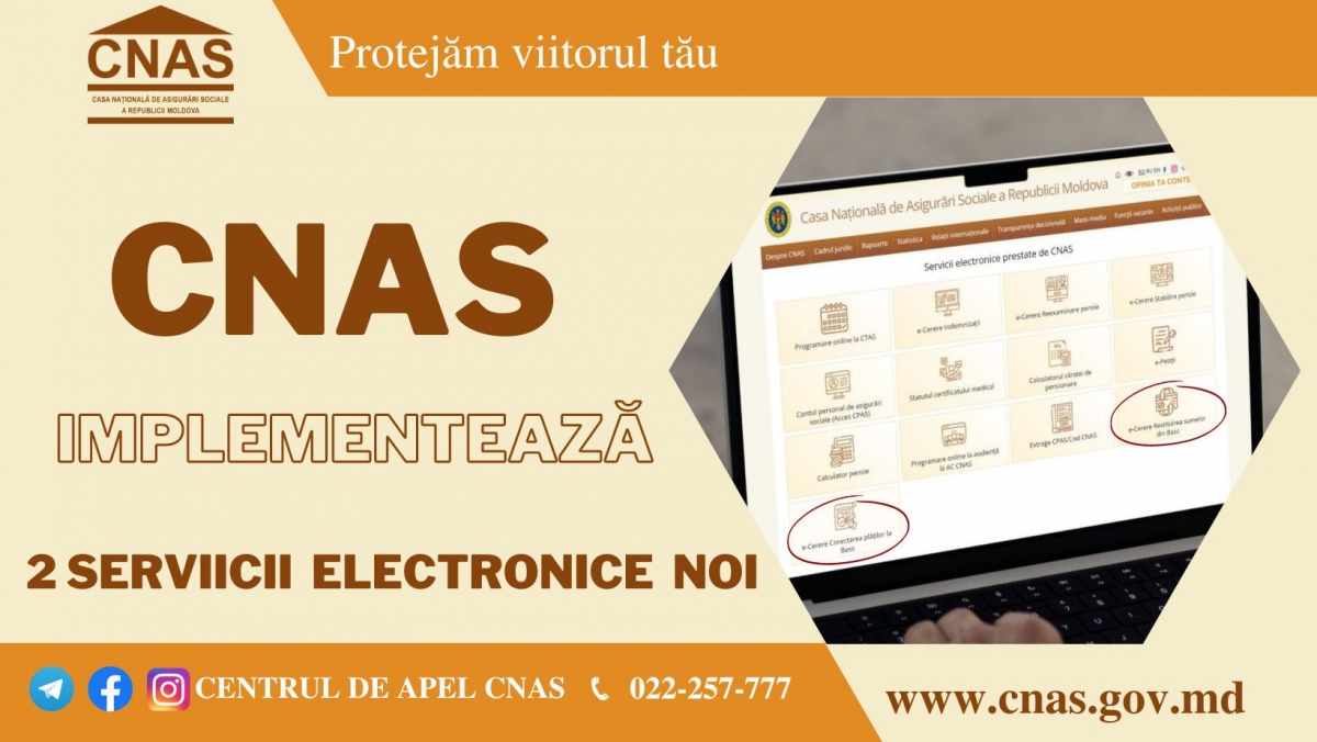 Pe pagina oficială a Casei Naţionale de Asigurări Sociale www.cnas.gov.md, compartimentul „Servicii electronice” este completat cu serviciile „e-Cerere Restituirea sumelor din BASS” şi „e-Cerere Corectarea plăţilor la BASS”.